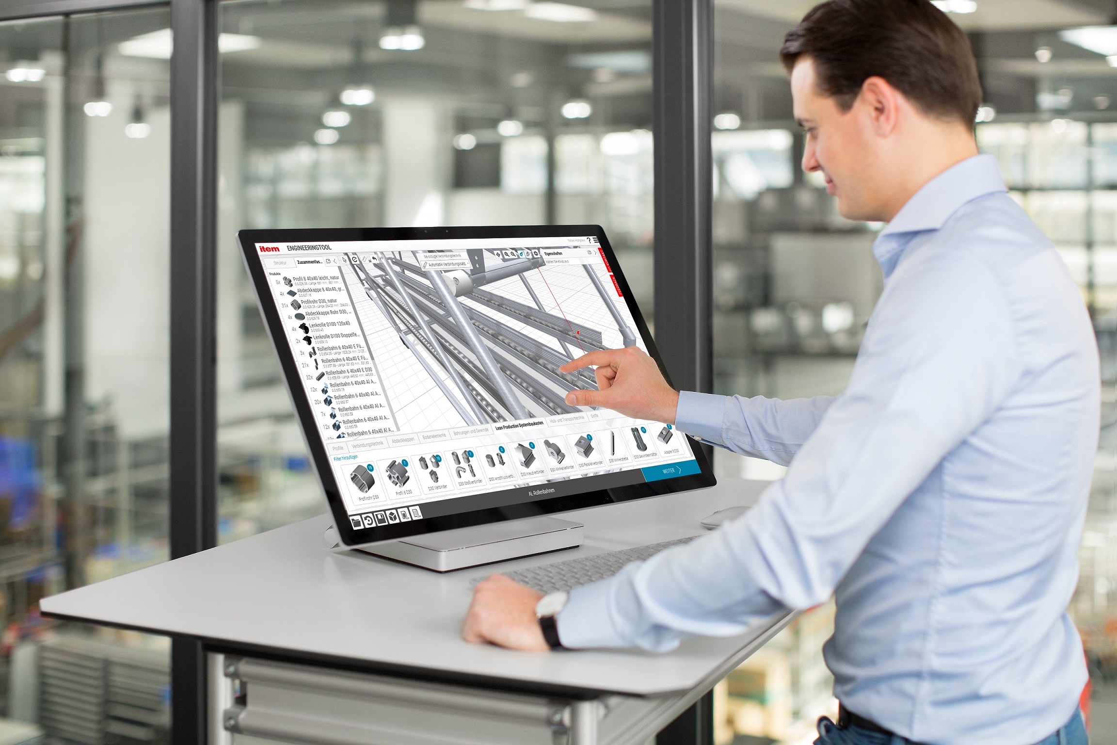 More design and configuration options – item is expanding its Engineeringtool to include key design details. For example, the engineering software now supports measurement of the distance between two parallel profiles. This means the usable width of openings in racks or machine frames can be identified directly. Roller Conveyor 6 40x40 Al is a new Engineeringtool component that can be used to design FIFO racks and Karakuri applications with ease. item MotionDesigner® now also supports drives and controllers from any manufacturer. Universal Drive Sets ensure users can combine these components with item Linear Units and receive a ready-to-install turnkey solution in just a matter of minutes. The updated version of the commissioning software item MotionSoft® features an optimised motion profile and is easier to navigate and operate.